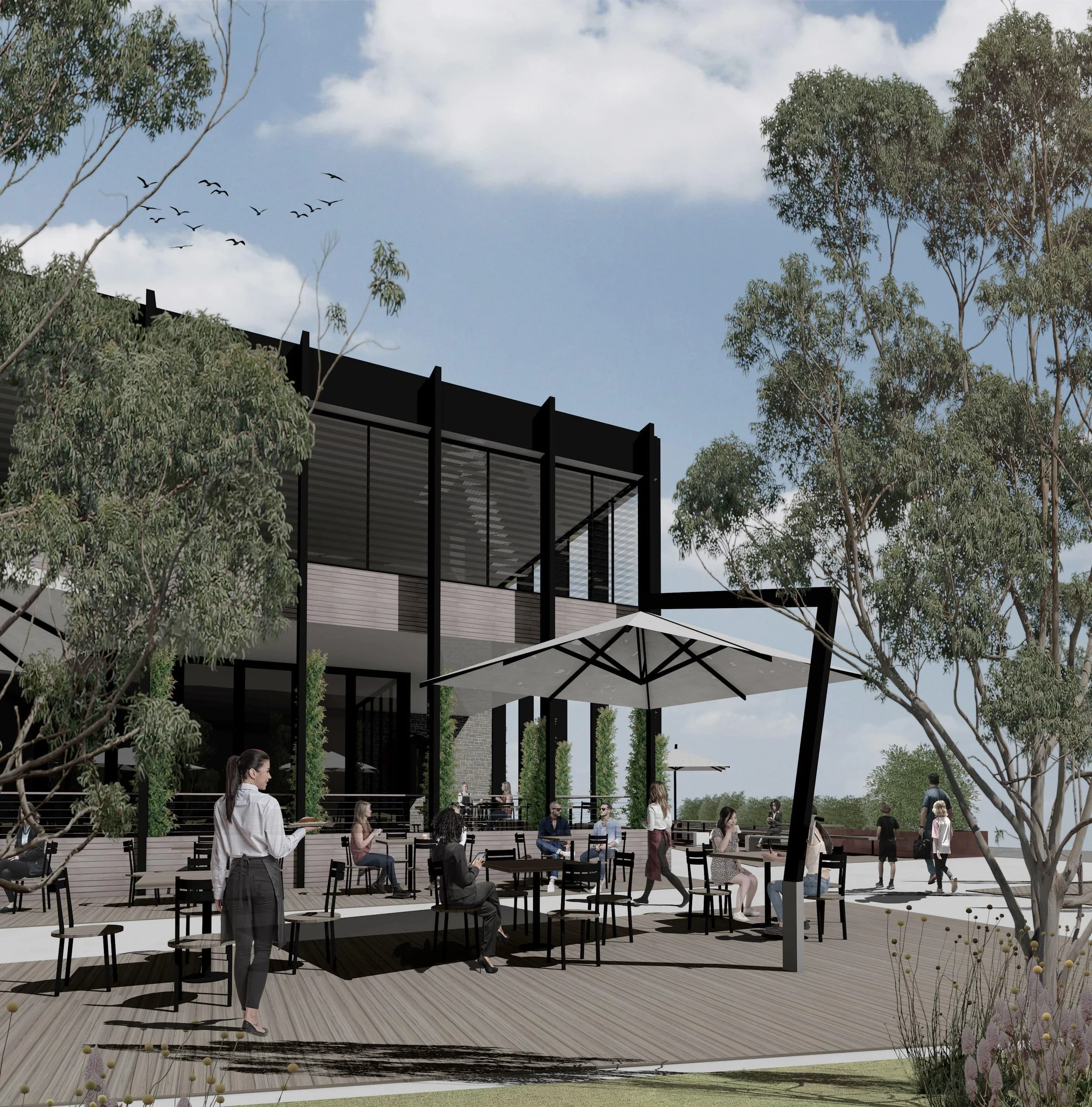 The centre piece of Hopkins Heights will be the Village Heart. An intimate and embracing Village Square for the entire community to enjoy. A place of memorable hospitality, a coffee in the morning, lunch and a wine at night. Some health and well-being offerings, work spaces, bespoke locally inspired and crafted goods, and local essentials. The Village Heart is being designed and created as a place where people feel invited, connected, at home and in community. We recognise this as an iterative and evolving journey of creation, not something that mushrooms overnight.